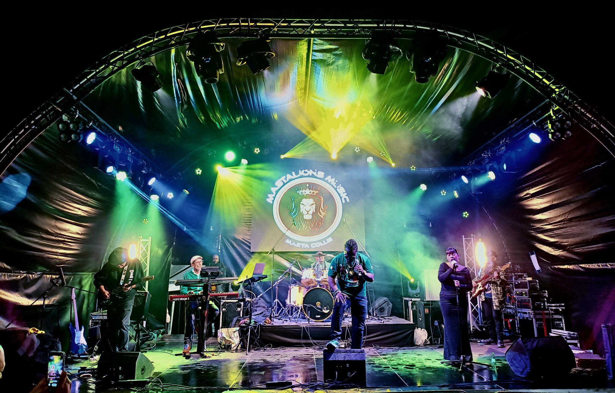 Ras Aldo, maître des rythmes jamaïcains, impose la cadence, tandis que le reste du band.