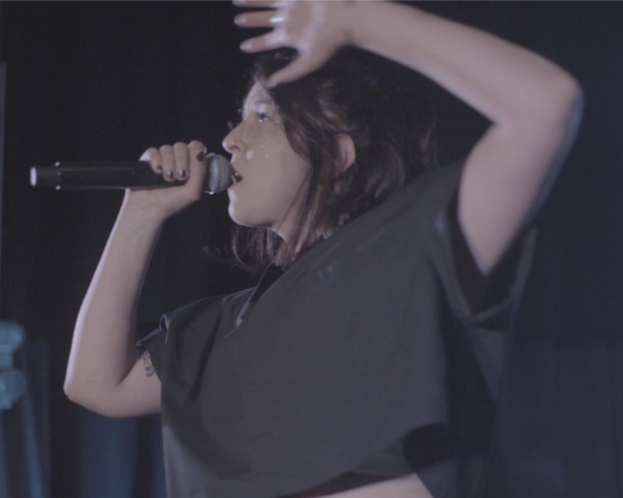 Sur scène elle crée un univers-fusion entre piano-voix en apesanteur, rythmes planants et décharges de 808. Dans un tableau sibyllin, elle chante des mots d'amour et de lutte, comme pour dissiper la noirceur.