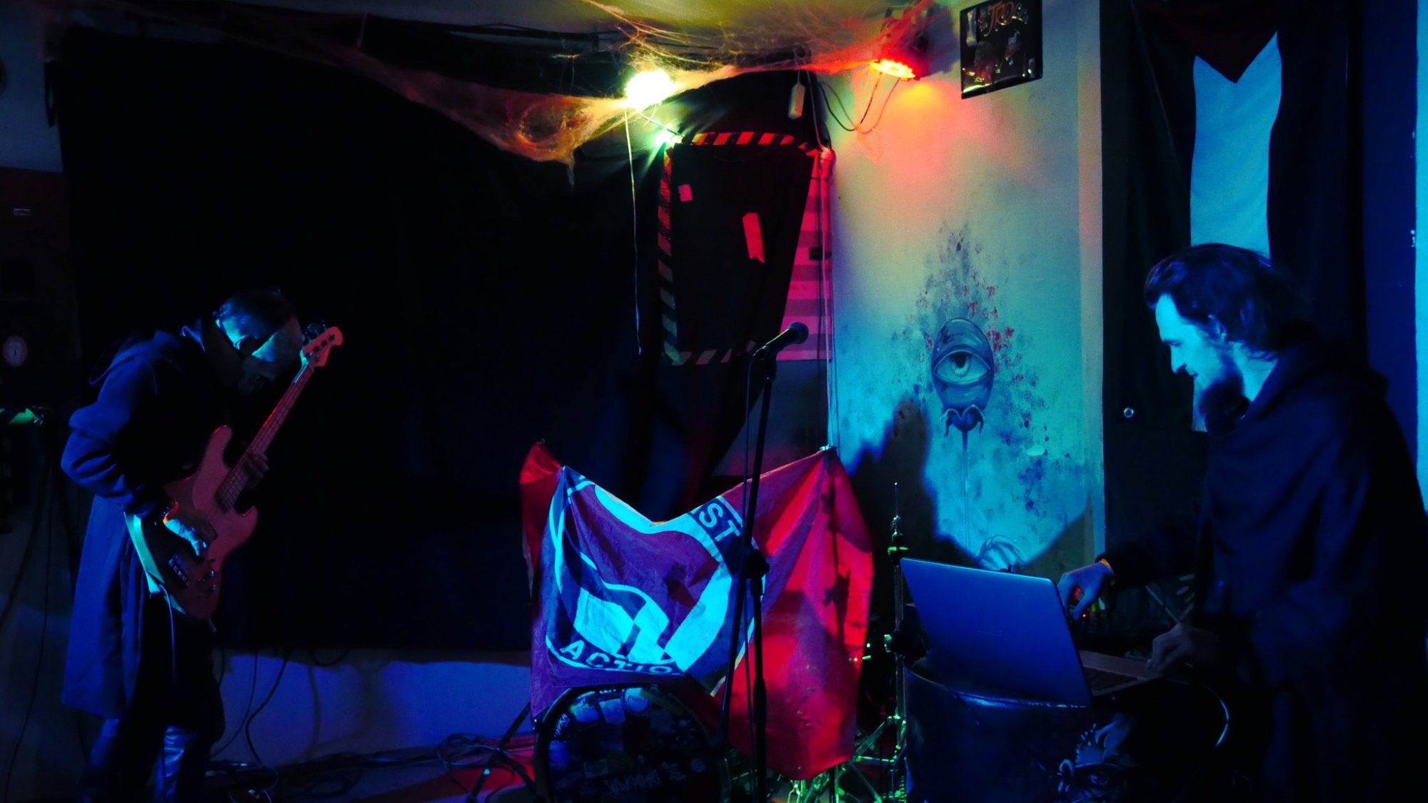 Their music evokes the atmosphere of a forgotten GDR broadcast, a fusion of industrial pressure, retro-futurist nostalgia, and urban poetry. On stage, Radio Active delivers a tight and intense performance: sharp sequences, saturated bass, and a rhythmic drive aimed straight at the dancefloor. The duo embraces a minimalist setup — just one bass and one operator — but generates a dense, immersive wall of sound.