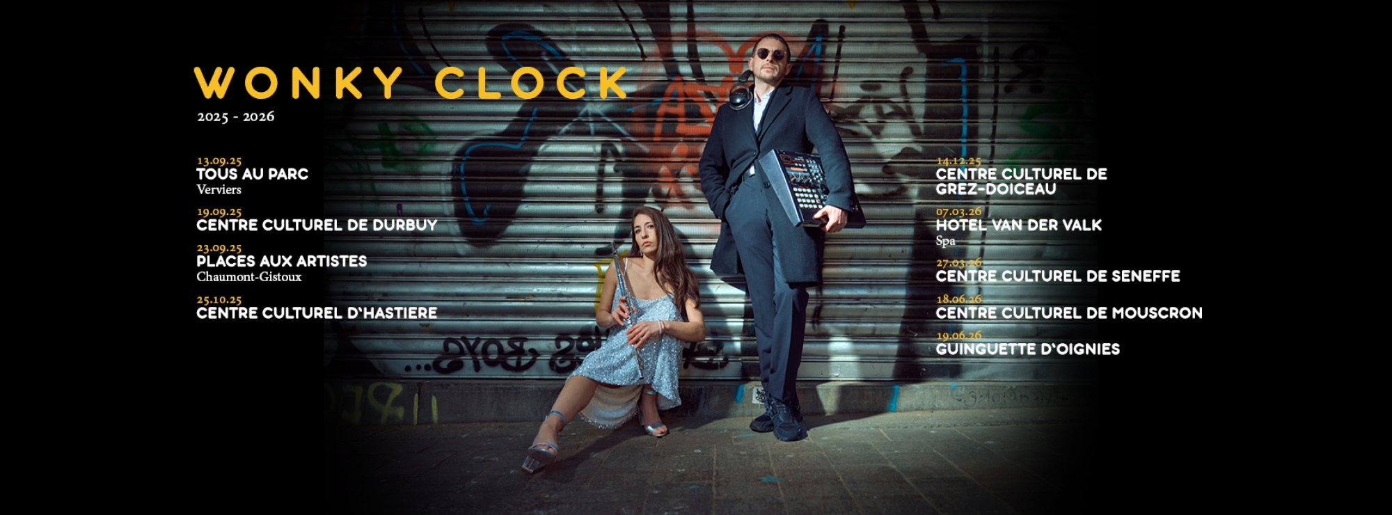 Récemment, le duo a eu l'honneur d'être booké pour assurer les premières parties d'artistes mythiques tel qu'High Tone (Jarring Effect), Jameszoo (Warp) et Herbaliser (Ninja Tune). Wonky Clock s'est produit plus de 125 fois en Belgique, en France et au Luxembourg.